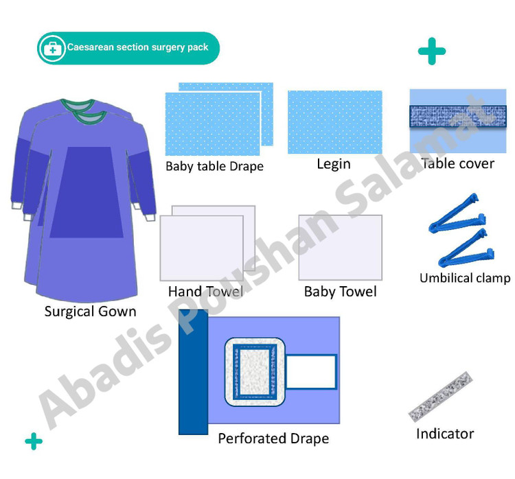 - استفاده از پک لباس سزارین باعث به حداقل رسیدن ریسک انتقال مستقیم و غیر مستقیم میکروارگانیسمها میشود.